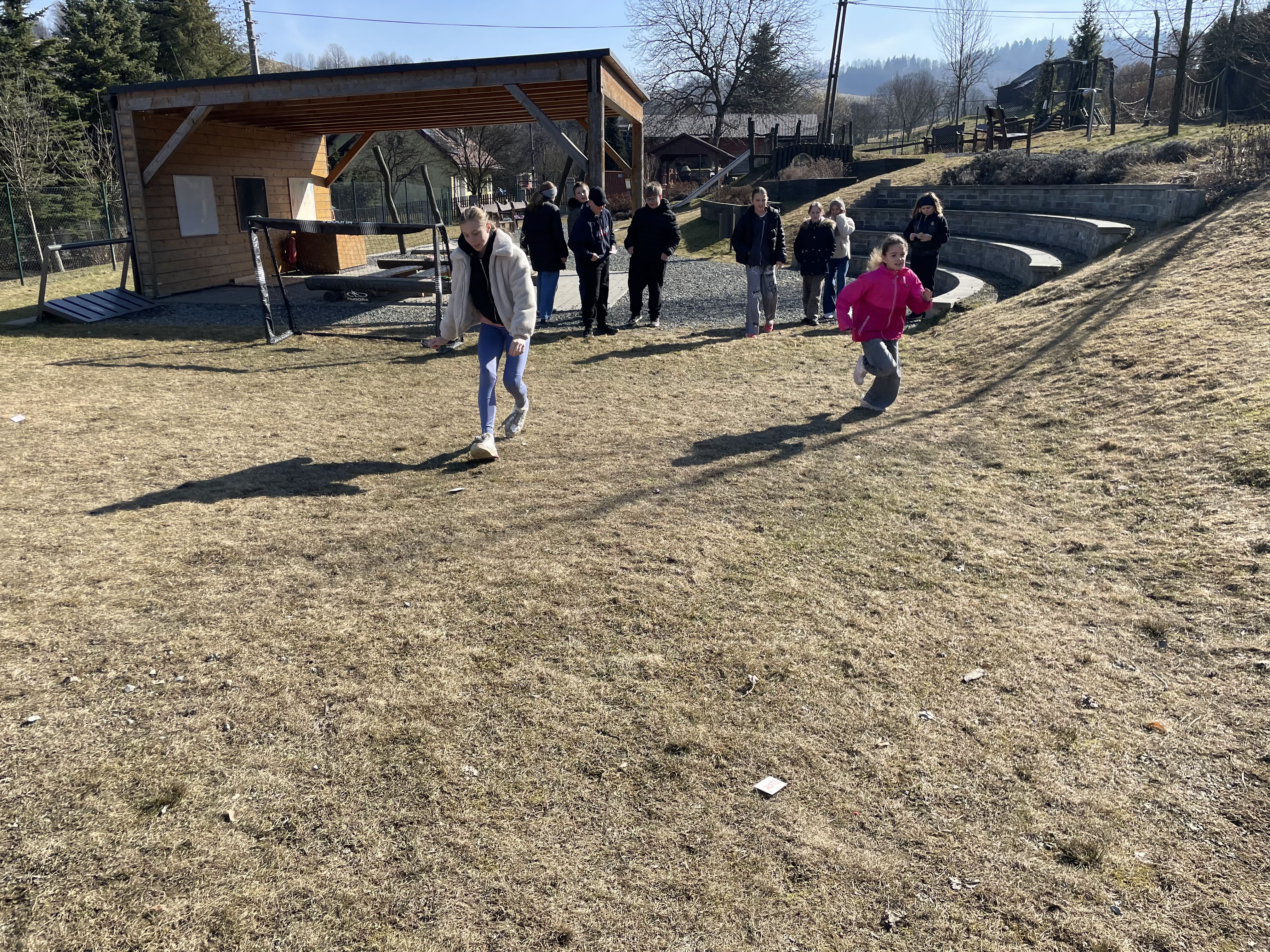 Krásné počasí nás láká k venkovní výuce, která má jiný rozměr – učíme se v pohybu, zapojujeme fantazii, spolupracujeme a upevňujeme si své znalosti. Slunečné počasí nám přeje a my se moc těšíme na další hodiny, které strávíme venku.