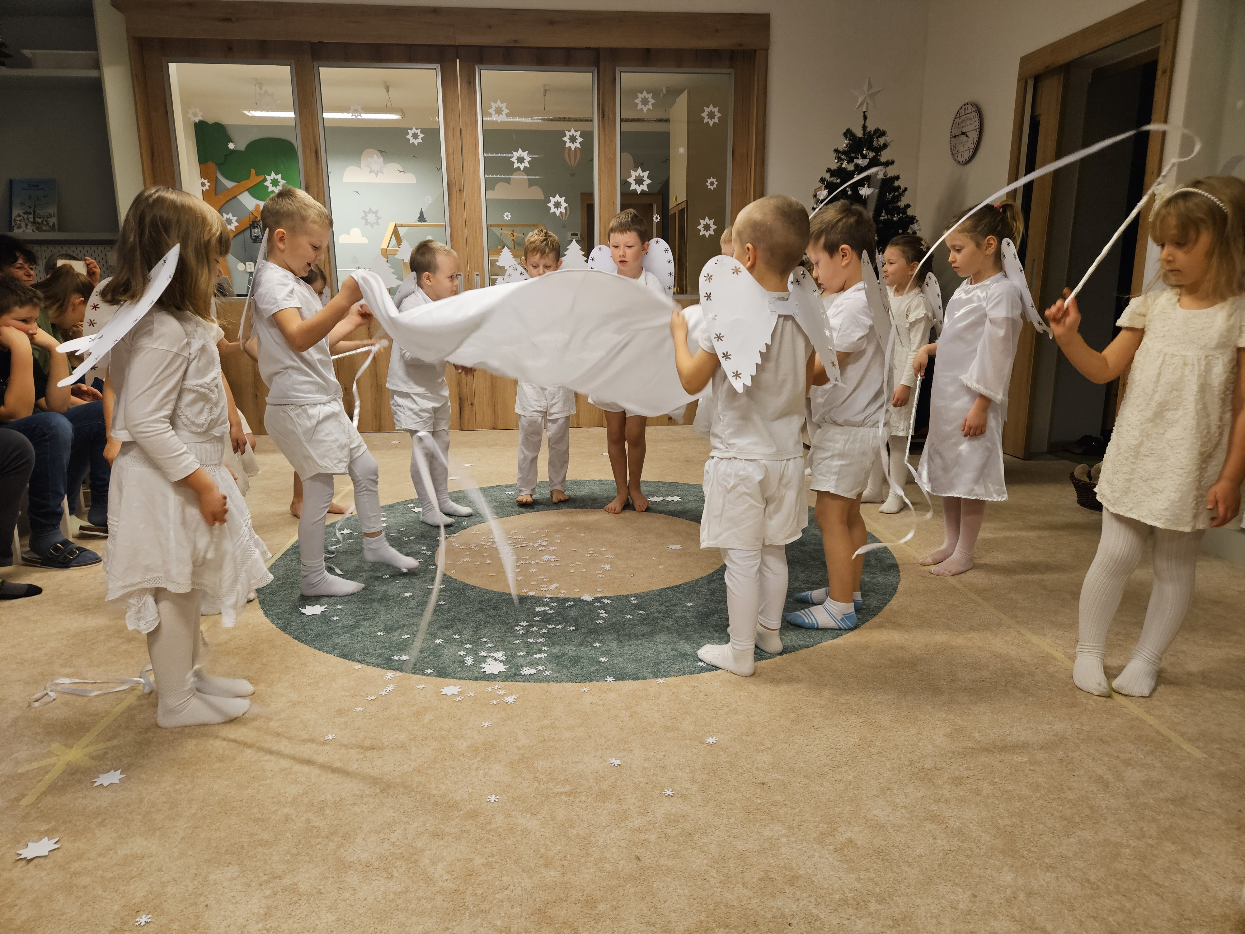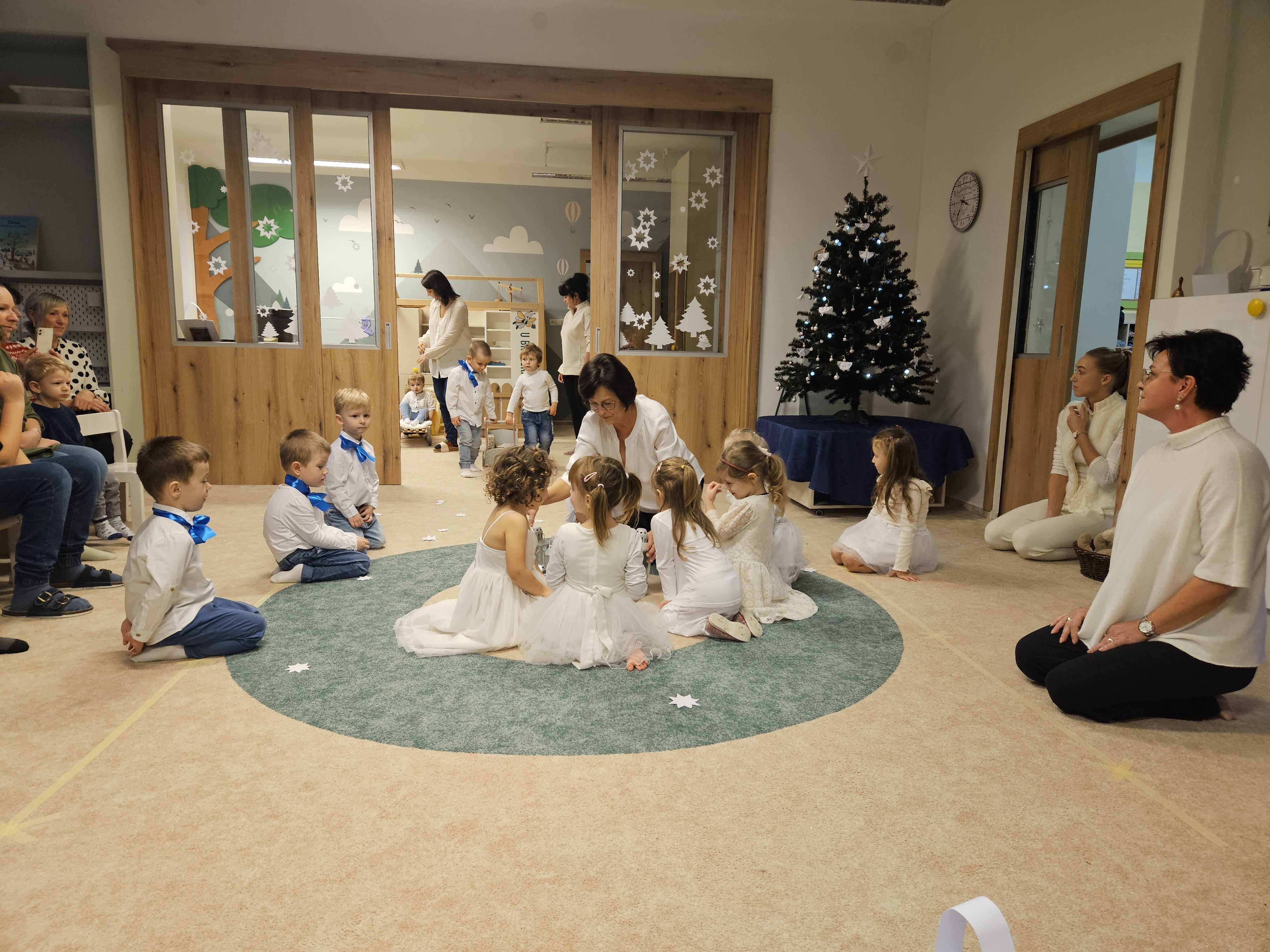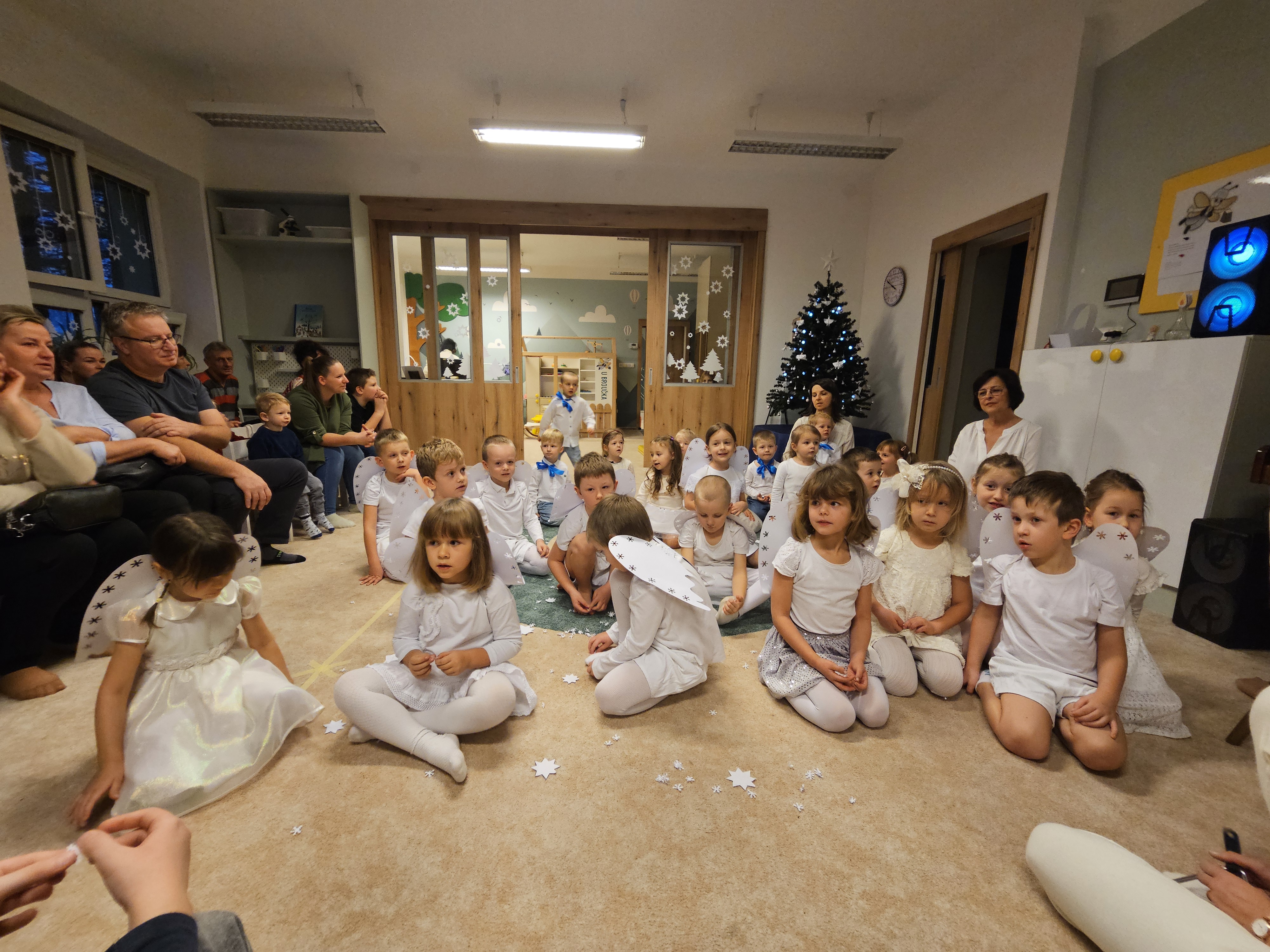 Také starší děti ze třídy Včelek přispěly svým kouzelným zimním tanečkem, básní a vánoční písní k vytvoření té správné sváteční atmosféry.