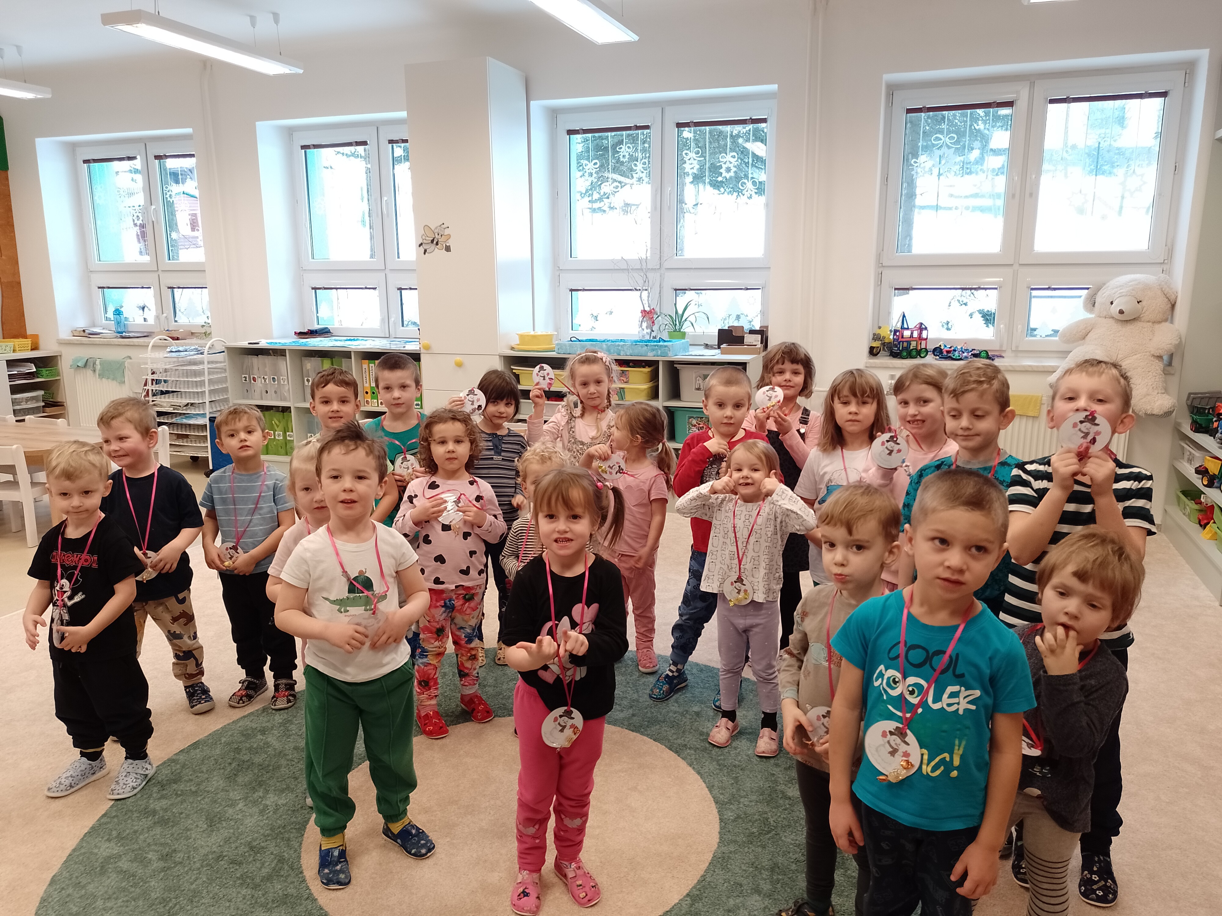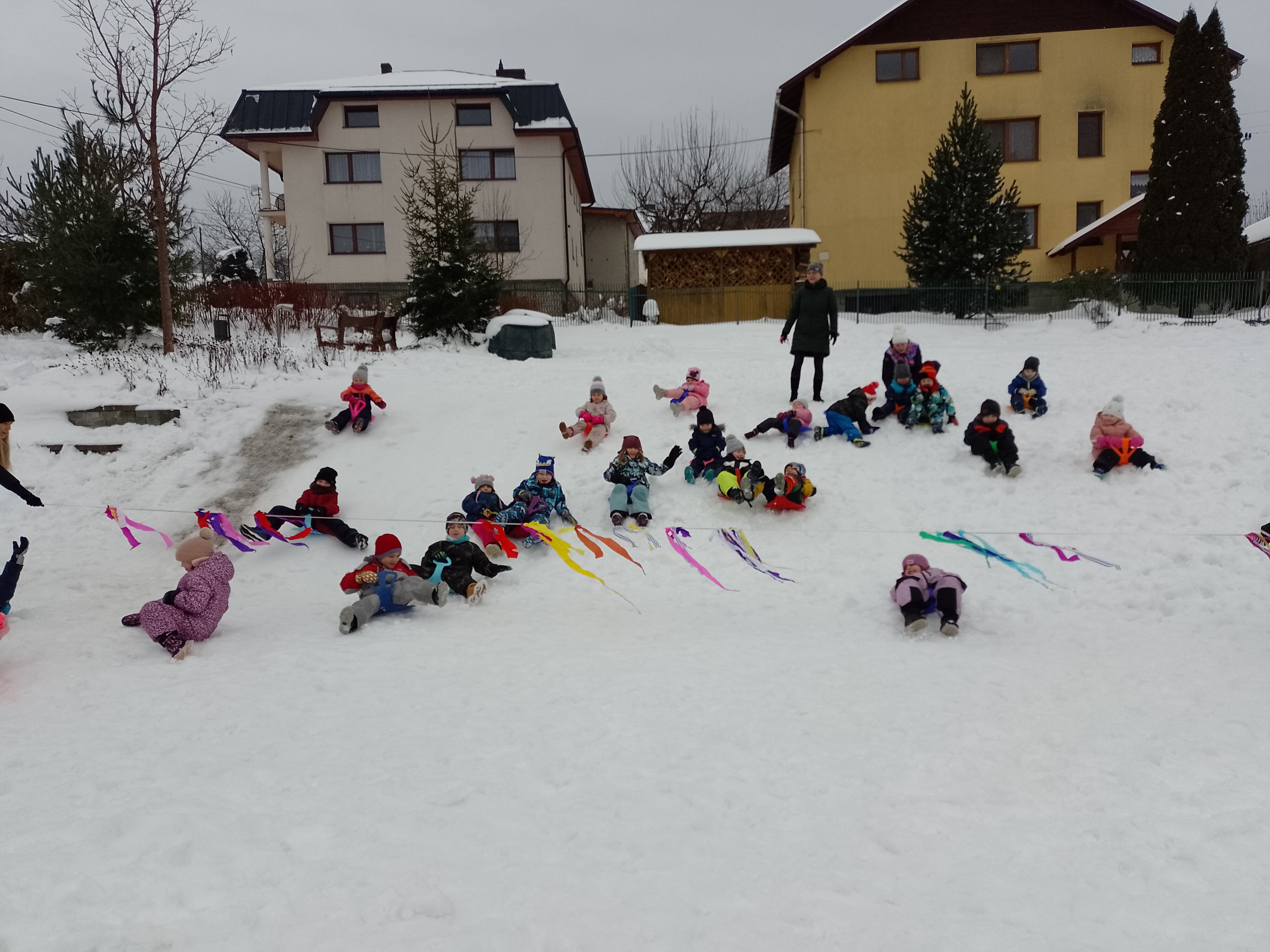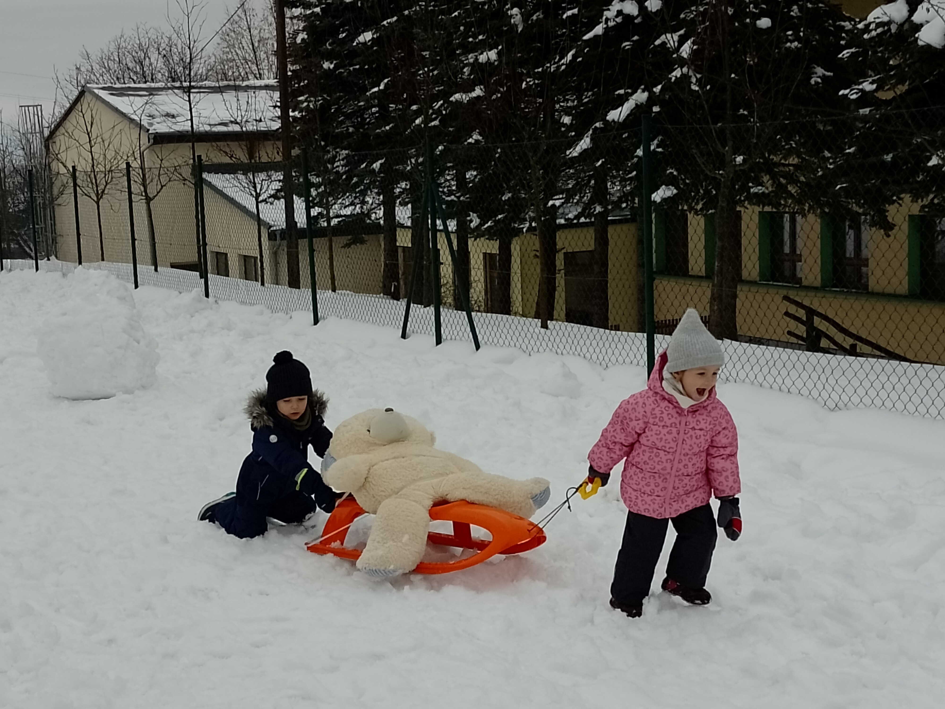 Ve čtvrtek 15. ledna za krásného zimního mrazivého počasí vyrazily děti na svah užít si zimních radovánek a poměřit síly ve sportovních aktivitách. Rozděleny do družstev zdolávaly dráhu se saněmi a zachraňovaly medvěda, házely do koše sněhovou koulí, plazily se tunelem a sjížděly na lopatách kopec. Jejich sportovní zápolení bylo oceněno medailí se sladkou dobrotou. Samozřejmě zvítězil každý sportovec. Sportu zdar!